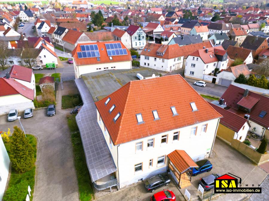 Zentral gelegen inmitten der Stadt Allstedt, Nähe Geschäftsstraße, sehr gute und verkehrsgünstige Lage sowie Anbindung zur neu erbauten A 38 Göttingen– Leipzig . Die Einheitsgemeinde Allstedt ist eine Stadt im Landkreis Mansfeld- Südharz im Südwesten Sachsen-Anhalts, nur wenige Kilometer von der thüringischen Landesgrenze entfernt.