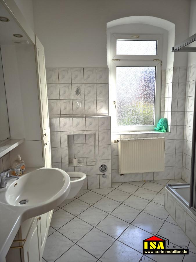 - Tageslichtbad mit Dusche, WC komplett gefliest