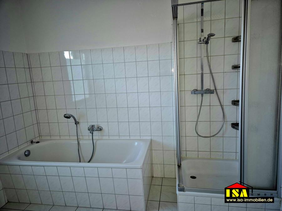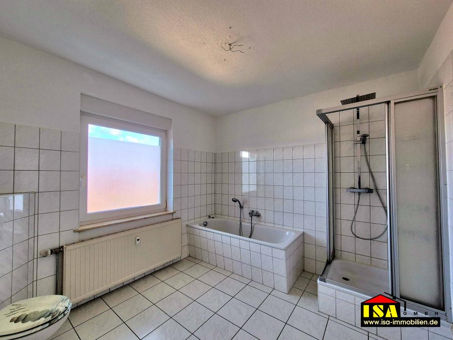 - Tageslichtbad, Badewanne, Dusche, WC und Waschbecken, gefliest