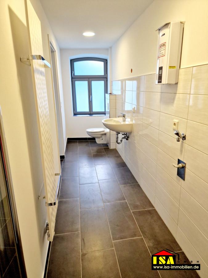 - Tageslichtbad mit ebenerdiger Dusche moderne Fliesen, WA- Anschluss