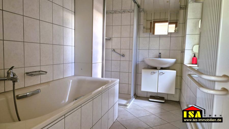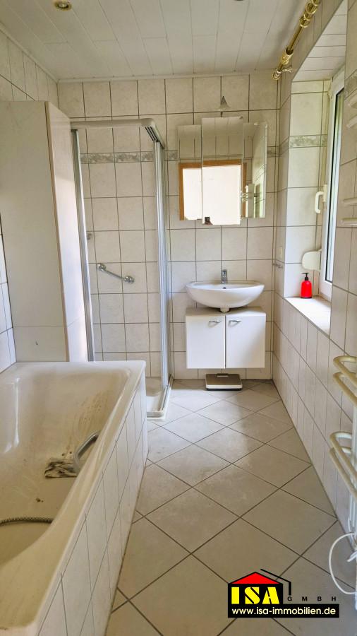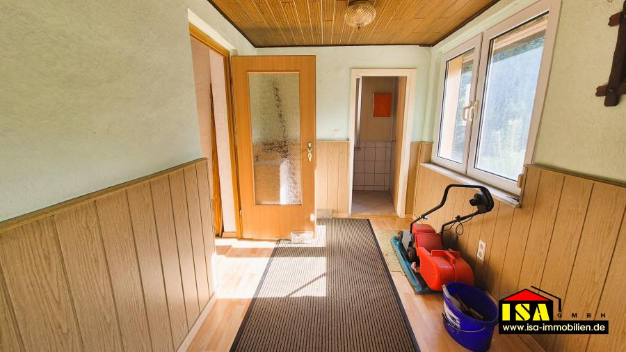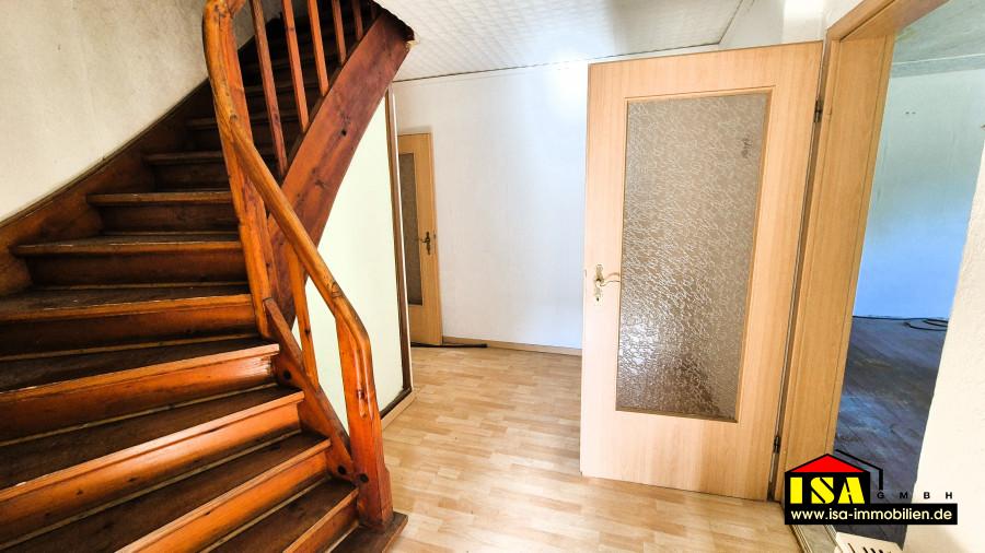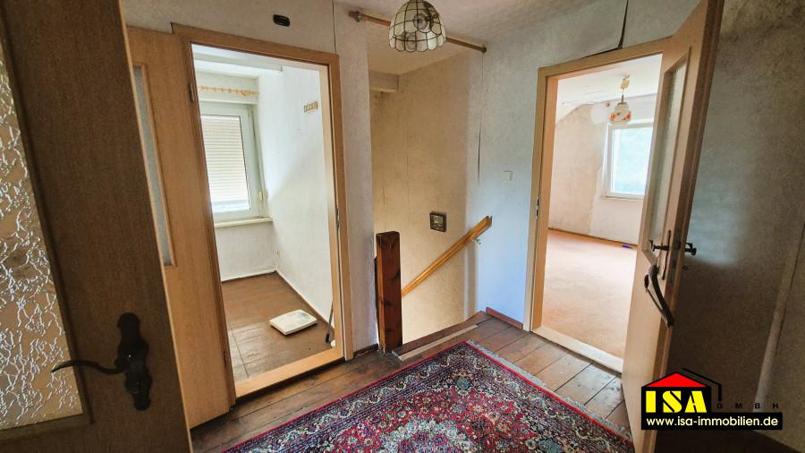 Das Wohnhaus ist renovierungsbedürftig und sofort bewohnbar. Es gibt ein Gäste- WC im EG, eine große Wohnküche und ein Wohnzimmer, ein Tageslichtbad mit Badewanne und sehr flacher Eckdusche. Im Dachgeschoss befinden sich ein großes Schlaf- und Kinderzimmer und ein Gäste-/Arbeitszimmer. Die Ölbehälter sind im Keller untergebracht. Eine breite Holztreppe führt in das DG. Die meisten Räume verfügen über eine gut erhaltene Dielung, welche wieder aufgearbeitet werden kann. Die Bäder sind komplett gefliest. Die Beheizung erfolgt über Öleinzelöfen bzw. über Stromheizungen.